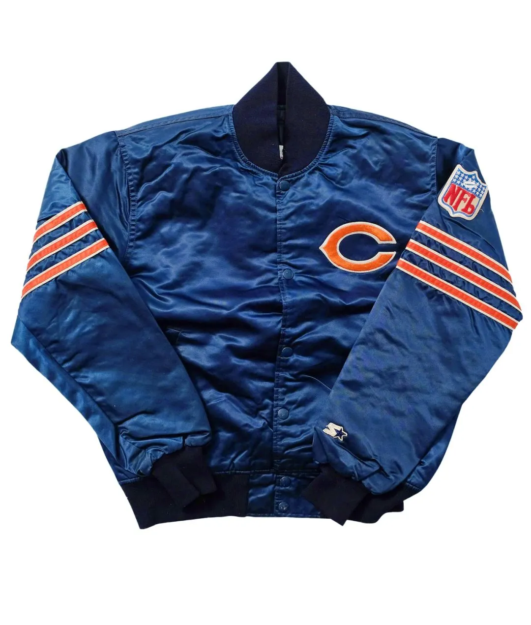 80s Chicago Bears Blue Satin Jacket From campus hallways to city streets,
