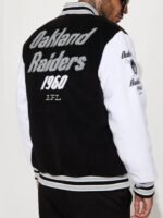 Key Features of the AFL Oakland Raiders 1960 Black and White Varsity Jacket