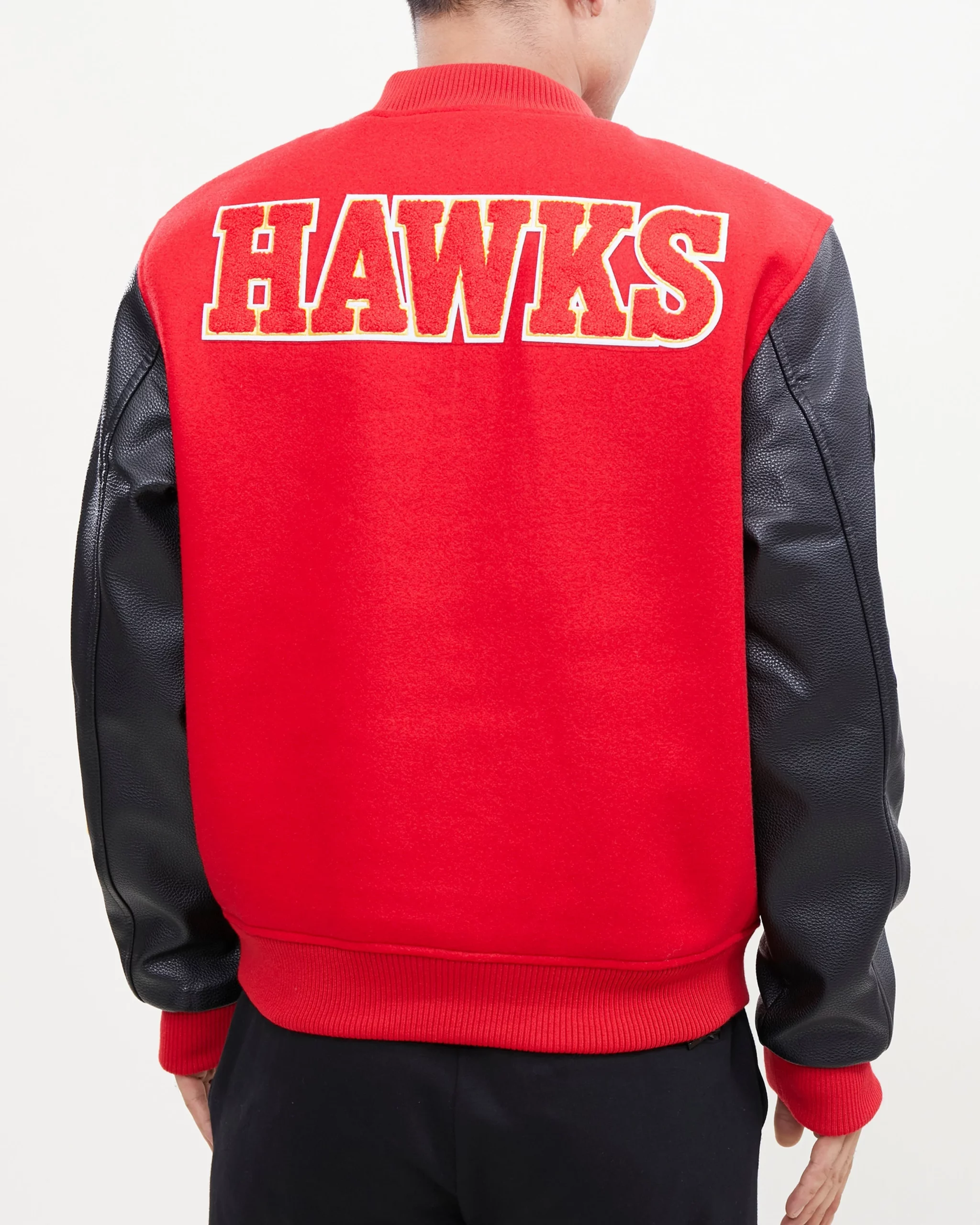 Step into tradition and show off your team loyalty with the Atlanta Hawks Classic Wool Varsity Jacket. Inspired by the timeless varsity style, this jacket is designed for fans who want to combine classic sports fashion with their passion for basketball. Crafted from premium wool with contrasting leather-style sleeves, it delivers both durability and standout style. Perfect for game days at State Farm Arena, casual outings, or as part of your collection, this jacket makes sure your Hawks pride is always on display.