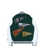 The Bape Black Green Varsity And Letterman Jacket isn’t just about style—it’s about attitude, culture, and standing out. Every detail, from the colorway to the embroidery, reflects the boldness that defines Bape. This jacket is built for those who refuse to blend in, those who want to leave an impression wherever they go.