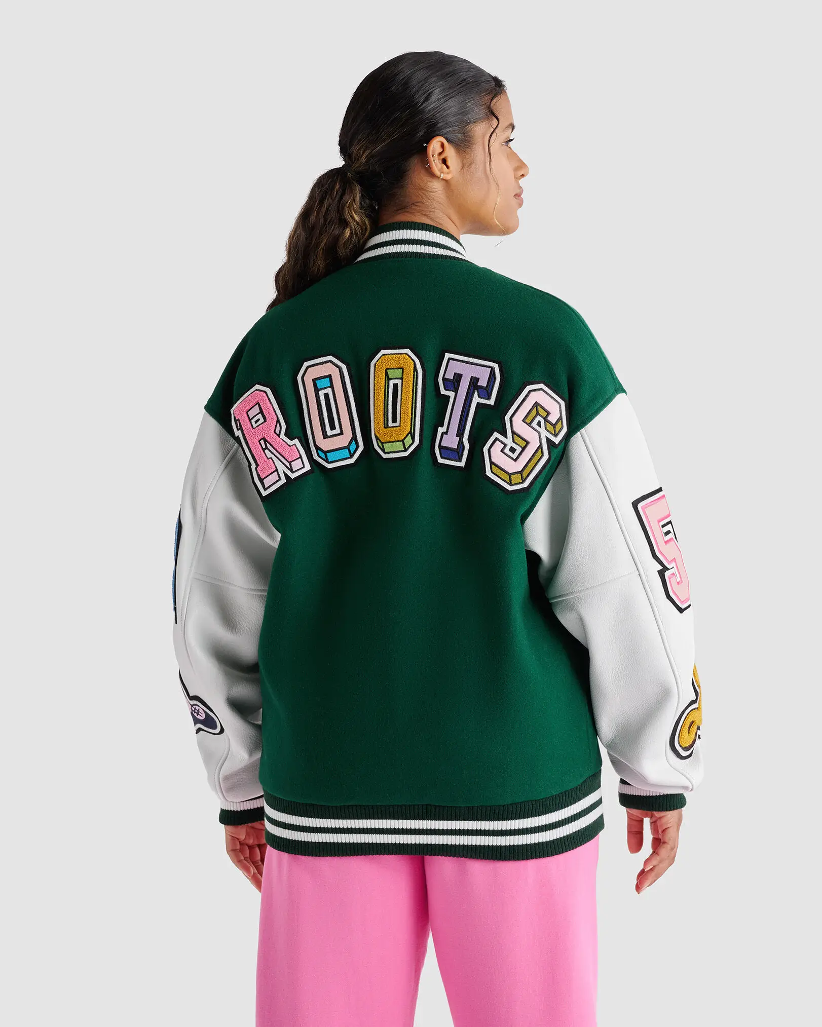 The Barbie X Roots Varsity Jacket adapts easily to any outfit. Pair it with jeans and sneakers for a casual, street-ready look, or layer it over leggings and boots for a more fashion-forward ensemble. Its blend of playful and classic elements makes it a versatile piece for casual outings, weekend events, or urban adventures.
