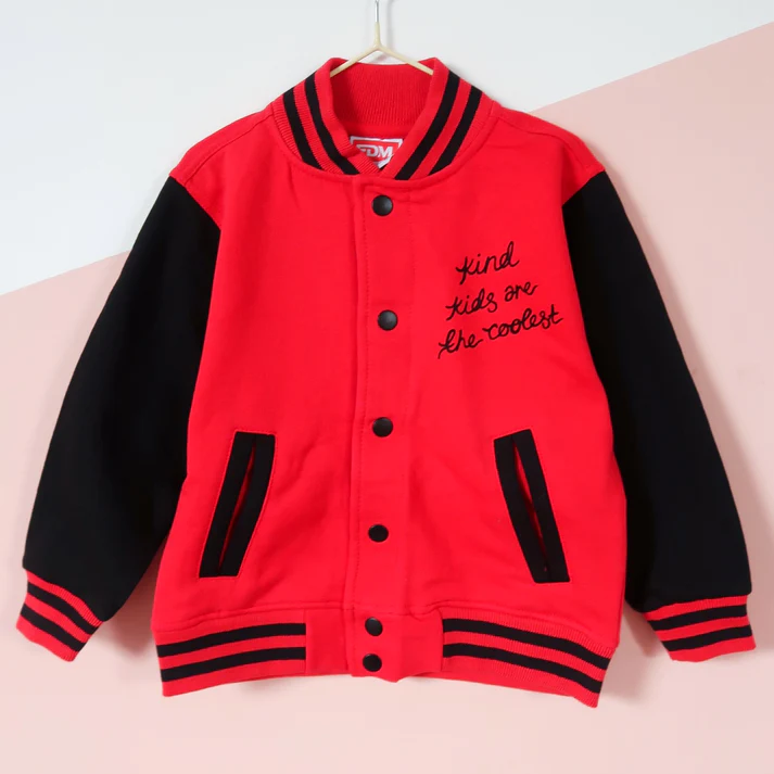 Being Kind Is Cool Kids Red Varsity Jacket – stylish, durable, positive kidswear. Shop now 50% OFF Free Shipping 2025.