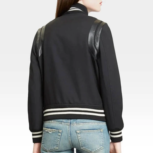 Made from premium-quality materials, the Black Womens Varsity Jacket ensures comfort and long-lasting durability. Ribbed cuffs, collar, and waistband provide a snug fit while allowing flexibility and freedom of movement. Lightweight yet warm, it is perfect for layering during cooler weather while keeping your look polished.