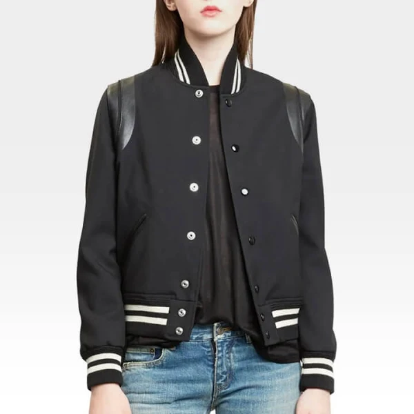 This jacket merges practicality with fashion. Its minimalist, timeless design makes it easy to pair with jeans, joggers, skirts, or casual pants, making it an essential addition to any wardrobe. Whether for everyday wear or special outings, the Black Womens Varsity Jacket delivers versatile style.