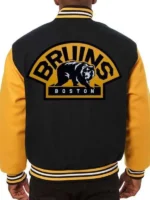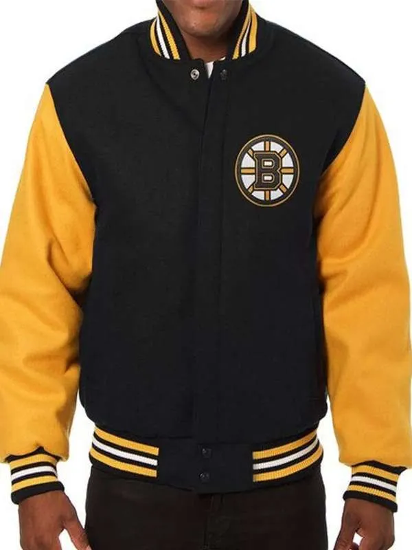 The Boston Bruins Black And Yellow Varsity Jacket is a stylish and bold tribute to the iconic NHL team. Perfect for hockey fans, streetwear enthusiasts, and collectors, this jacket combines classic varsity design with team-inspired flair. Its striking black and yellow colorway and premium craftsmanship make it a standout piece for game days, casual outings, or adding a collectible piece to your wardrobe.