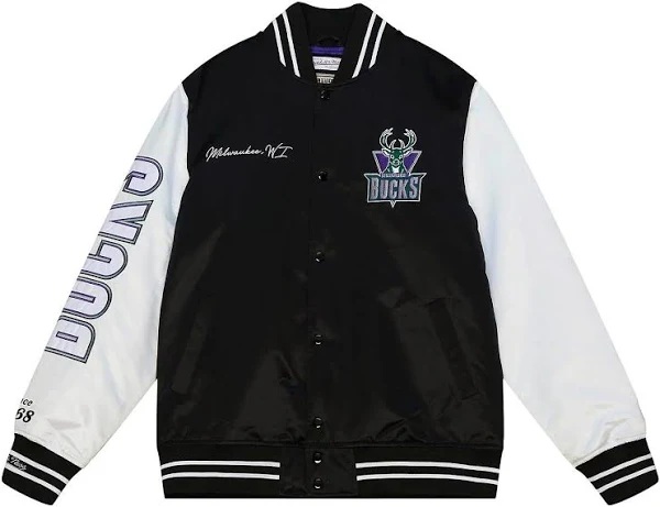 Crafted with a warm wool body, durable leather sleeves, and ribbed trims, the Bucks Varsity Jacket offers long-lasting quality and comfort. Whether you’re cheering courtside or strolling through the city, this jacket ensures you stand out as a true Milwaukee Bucks supporter.