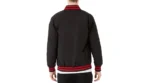 The jacket features the iconic Chicago Bulls wordmark logo across the chest, giving it a standout look. With its sleek black base and striking red and white detailing, this varsity jacket represents the classic Bulls colors that every true fan loves.