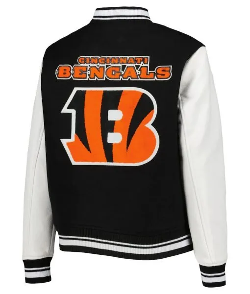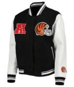 The jacket features the iconic letterman style, complete with Bengals colors, team logos, and bold details. The classic varsity look makes it versatile—you can wear it with jeans, joggers, or casual outfits while proudly showing your support for the team.