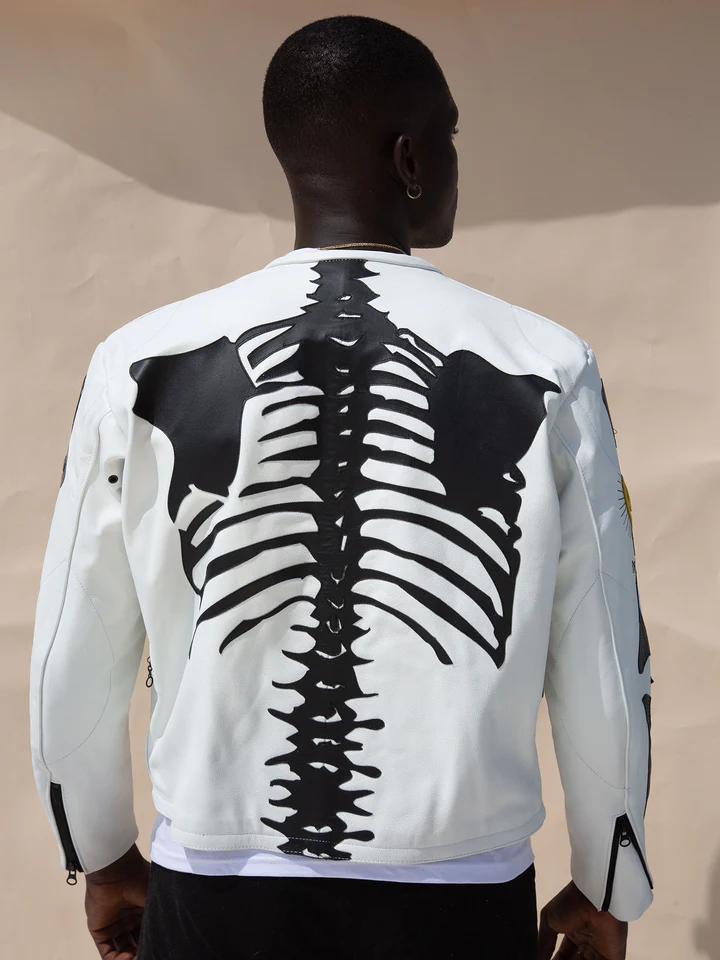 • Sleeves: Full-length leather sleeves with skeleton-inspired accents.