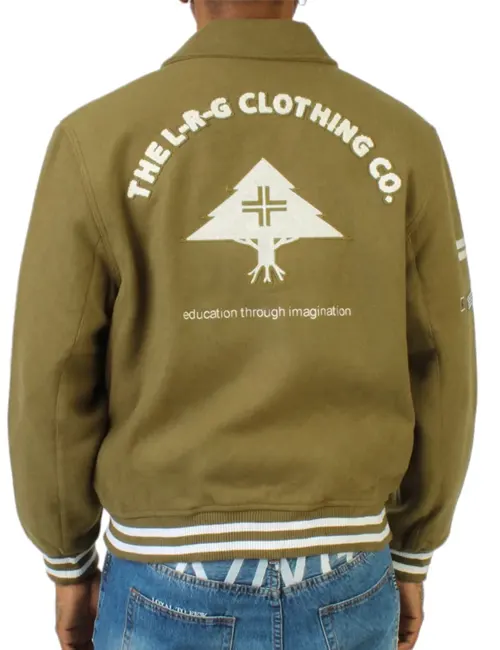Ribbed cuffs, striped collar, and snap button closure give it that authentic varsity look, upgraded with LRG’s unique design touches.