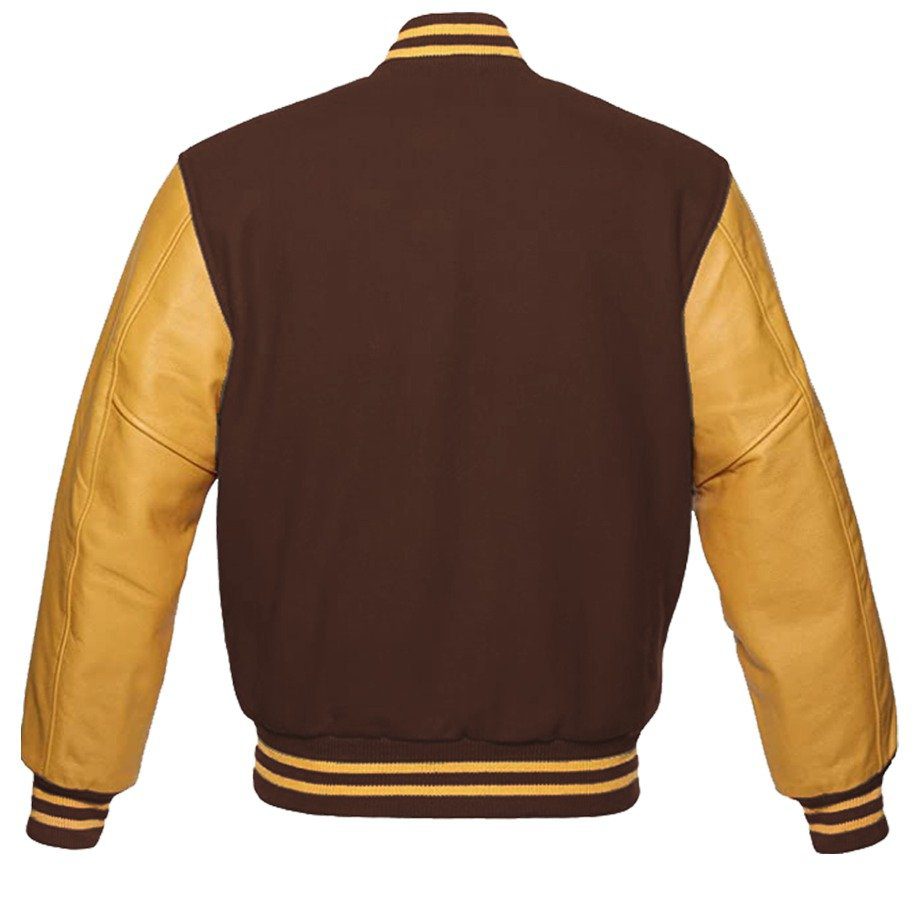 Crafted from high-quality materials, the Gold Letterman Jacket offers durability while keeping you comfortable. Its rich gold finish sets it apart from the usual colors, making it a head-turner in any crowd. Rib-knit cuffs, hem, and collar add to its classic varsity appeal while ensuring a snug and stylish fit.