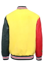Pair it with jeans, joggers, or casual trousers for versatile styling options. Whether attending social events, heading out for casual outings, or making a streetwear statement, the Good Vibes Worldwide Yellow Black And Red Varsity Jacket guarantees both comfort and eye-catching style.