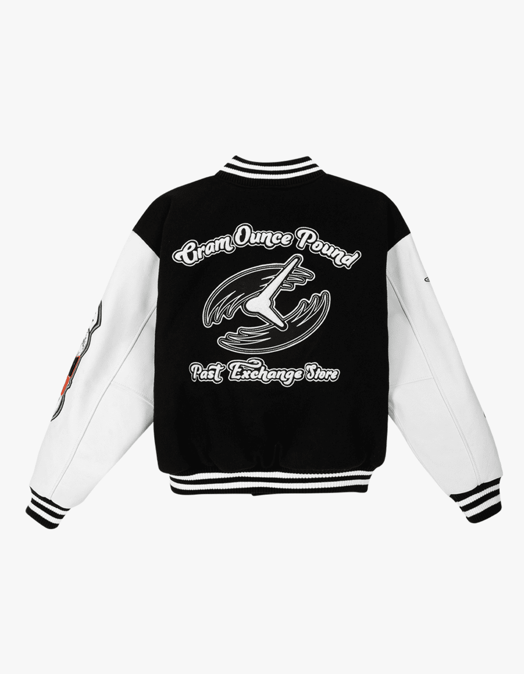 Key Features Of Gram Ounce Pound Black And White Varsity Jacket