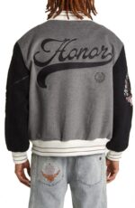 Honor The Gift Faux Shearling Sleeve Grey Varsity Jacket mixes luxury with varsity heritage. Shop now at 50% OFF FREE shipping 2025.