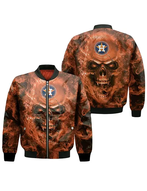 Pair it with jeans, joggers, or casual pants for versatile styling. From sporting events to casual streetwear looks, the Houston Astros Skull Jacket combines comfort, edgy style, and team pride in one iconic piece.