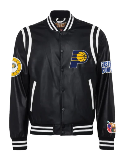 Pair it with jeans, joggers, or casual pants for versatile styling. From NBA events to streetwear looks, the Indiana Pacers Vegan Black Leather Jacket delivers comfort, style, and authentic team pride.