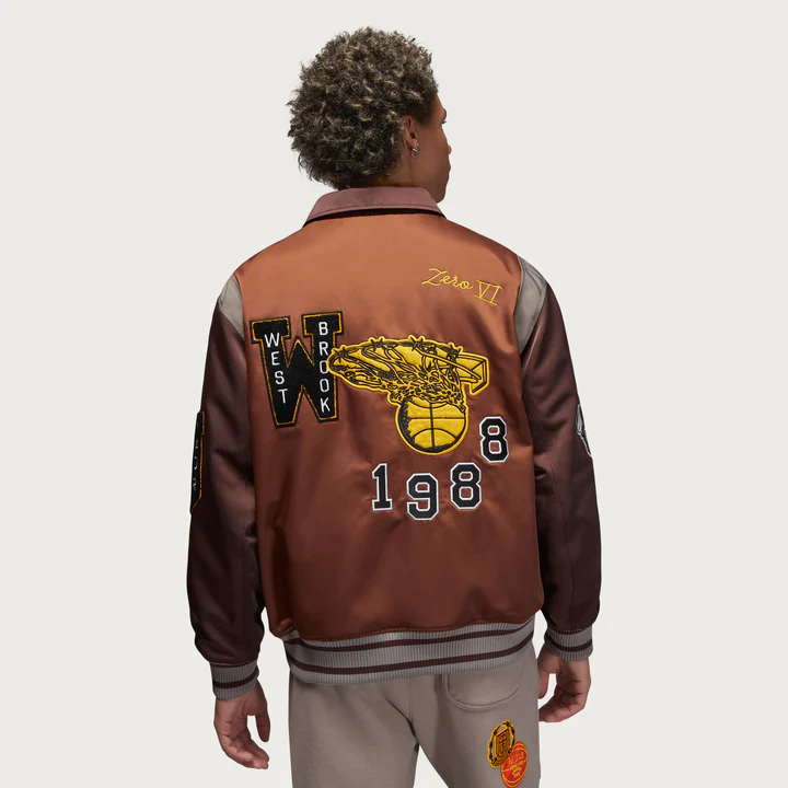 Key Features Of Jordan X Htg Colorblock Satin Varsity Jacket