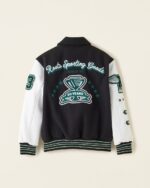 The Kids Sporting Goods Black and White Varsity Jacket is more than just a jacket—it’s a sporty fashion essential that combines varsity tradition with everyday functionality. With its bold black and white contrast, durable construction, and comfortable fit, it’s made for kids who want to look cool while staying active.