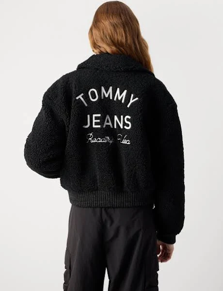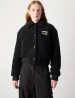 • Classic varsity bomber jacket design tailored for women.