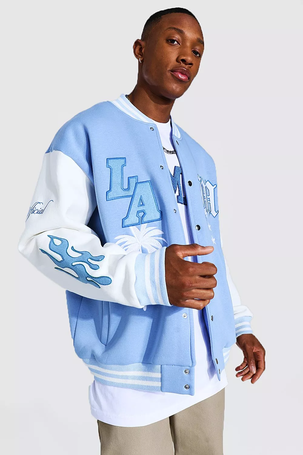 Refresh Your Wardrobe With Light Blue And White Varsity Jacket
