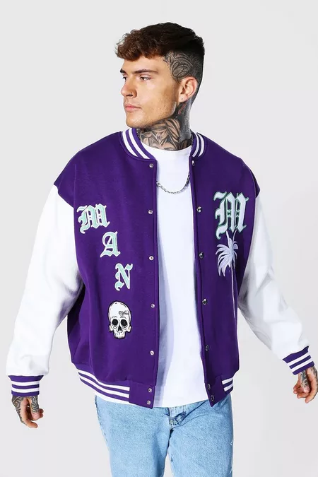 Why Choose Man Official With Skull Badge Varsity Jacket
