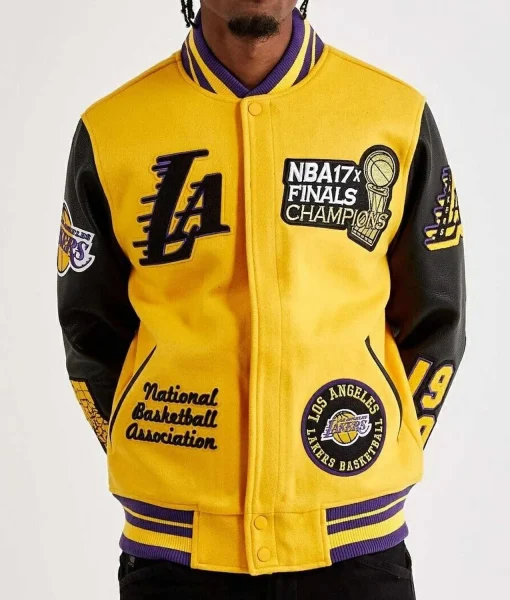 Key Features Of Mash Up Los Angeles Lakers Yellow and Black Varsity Jacket