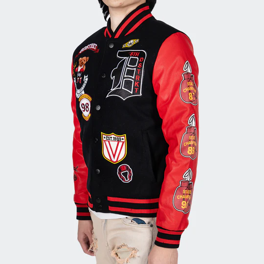 The Men’s Boxing Teddy Bear Champ Black And Red Varsity Jacket is a bold and playful piece that combines classic varsity style with modern streetwear flair. Featuring a striking black body with vibrant red sleeves and iconic Teddy Bear Champ embroidery, this jacket is perfect for anyone looking to make a statement. Crafted from premium materials, it delivers warmth, durability, and comfort for everyday wear. Its versatile design allows you to pair it effortlessly with jeans, joggers, or sneakers, making it ideal for casual outings, social events, or streetwear-inspired looks. With its combination of sporty heritage and fun detailing, the Men’s Boxing Teddy Bear Champ Black And Red Varsity Jacket is a must-have for any fashion-conscious wardrobe.