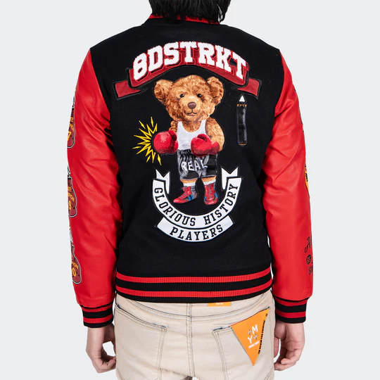 Why Choose Men’s Boxing Teddy Bear Champ Black And Red Varsity Jacket