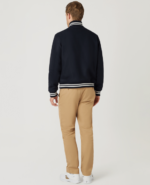 The Navy Varsity Jacket is more than just a stylish piece. Designed with ribbed cuffs and waistband, it ensures a snug fit while allowing freedom of movement. Its minimalist, classic design gives you a polished look while offering comfort for all-day wear. This jacket is a versatile addition to any wardrobe, combining functionality with a timeless aesthetic.