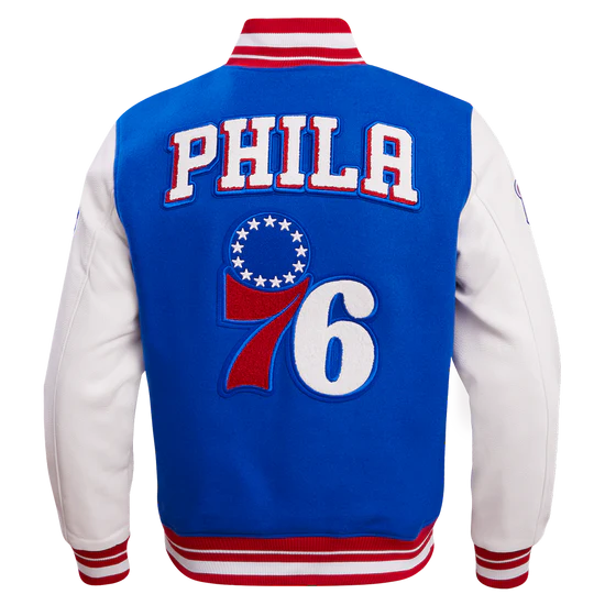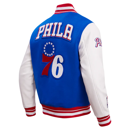 Celebrate one of the NBA’s most storied franchises with the NBA Philadelphia 76ers Retro Classic Wool Varsity Jacket. Designed with a timeless varsity silhouette and authentic 76ers detailing, this jacket brings the perfect mix of retro style and modern comfort. Whether you’re heading to Wells Fargo Center, repping your team on the streets, or adding to your NBA collection, this jacket shows your Sixers pride in style.