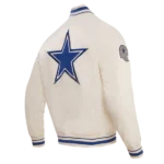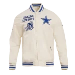 Crafted with premium rib satin fabric, the jacket provides a sleek and durable finish, while the retro-inspired design channels the classic Cowboys aesthetic. The ribbed cuffs, collar, and hemline deliver a snug fit and traditional varsity appeal. Its bold Dallas Cowboys logo and team colors make it a standout piece, perfect for fans who want authentic NFL merchandise in a stylish package.