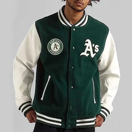 Show your Athletics pride with the Oakland Athletics Green And White Jacket, a stylish varsity-inspired piece featuring the team’s classic green and white colors. Perfect for game days, casual wear, or adding to your fan collection, this jacket combines premium materials with authentic team detailing for a timeless look.