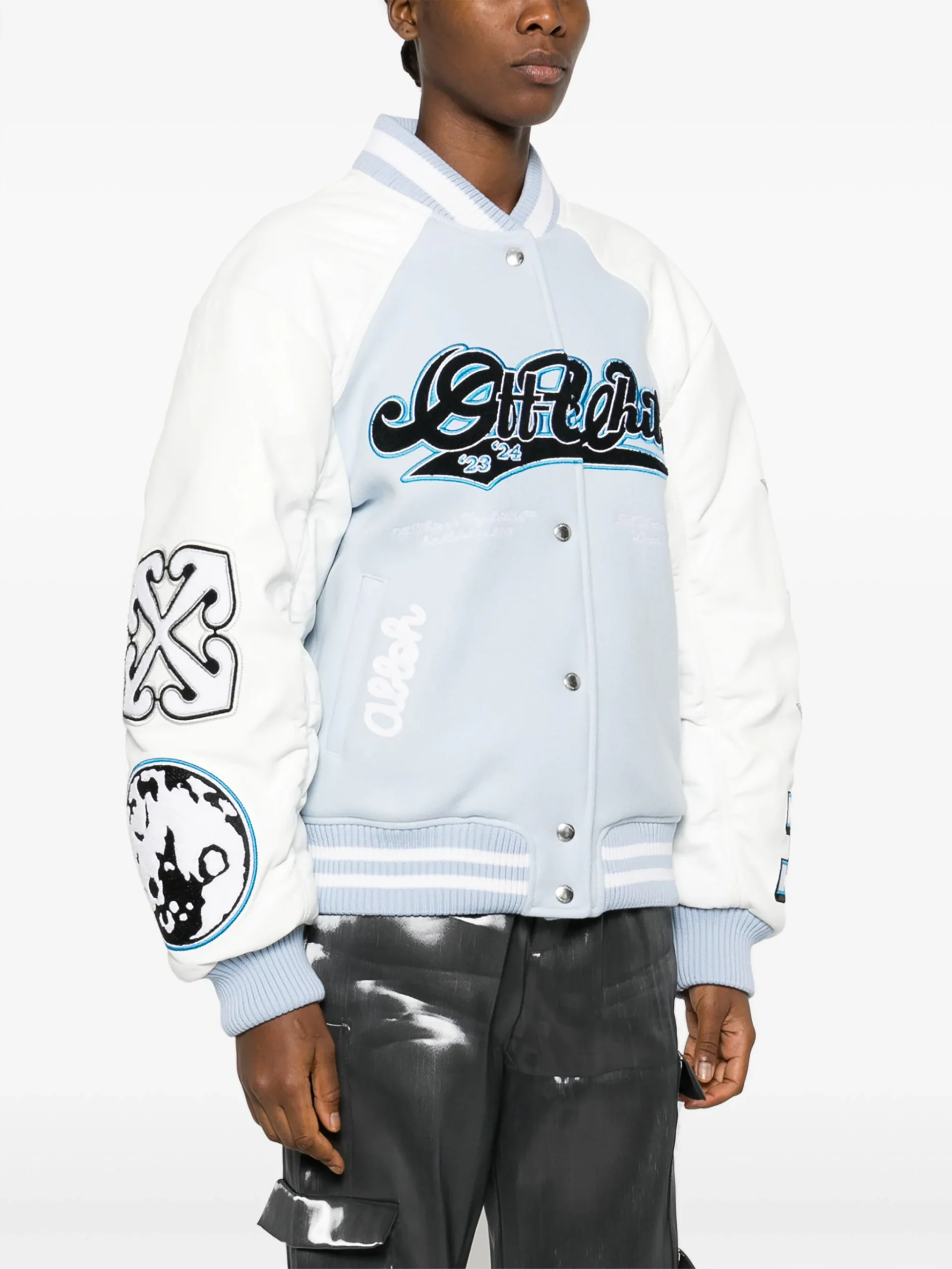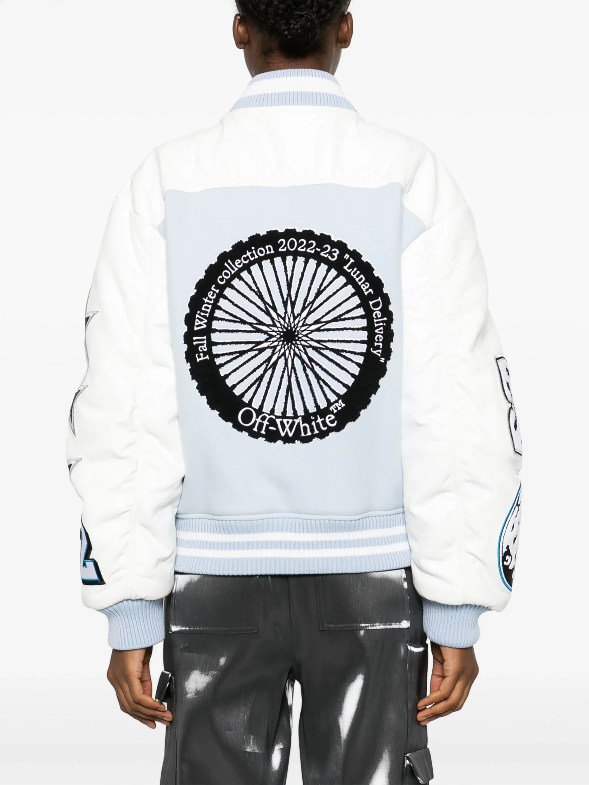 Off White Moon Wheel Leather Premium Varsity Jacket