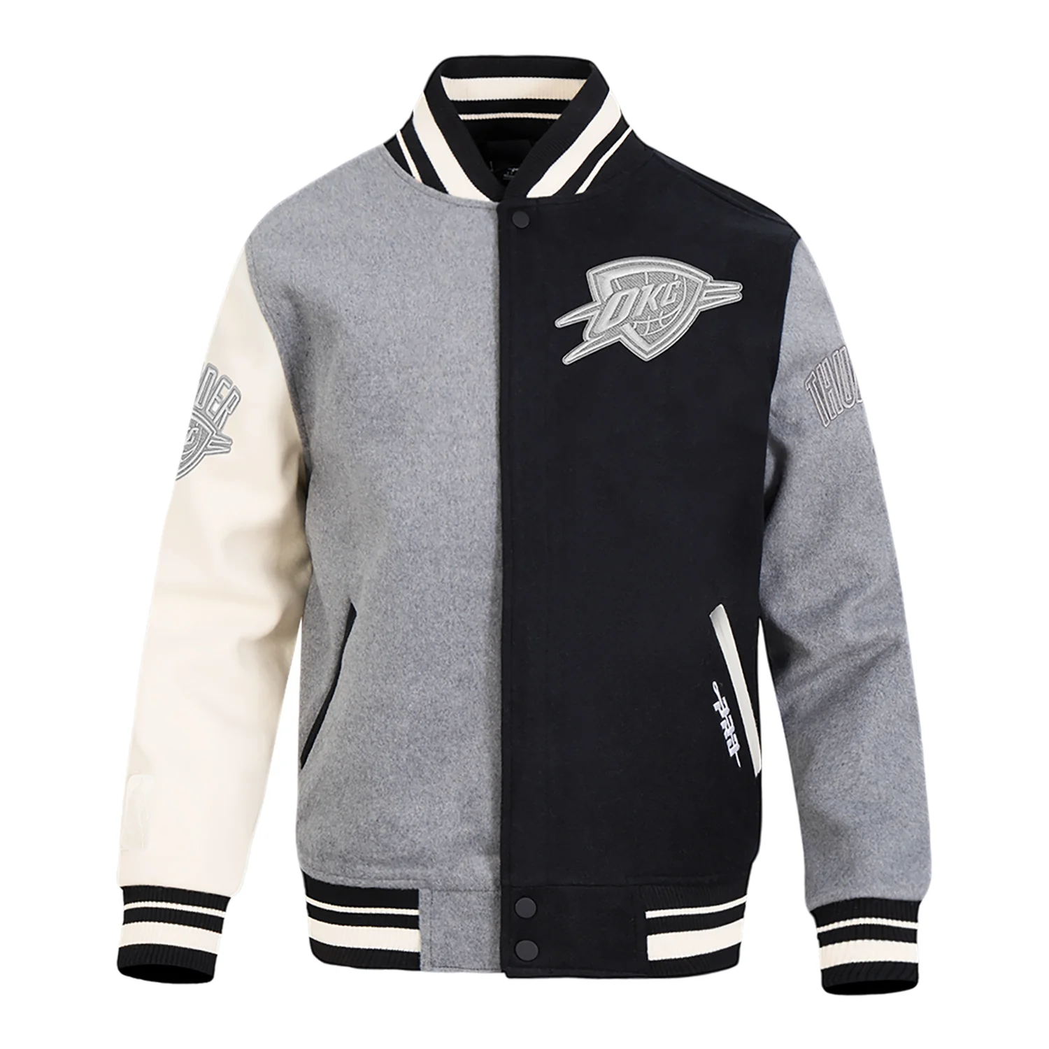 Celebrate the Oklahoma City Thunder with this stylish varsity jacket that blends sports culture with timeless fashion. Its iconic design, complete with team colors and logo, makes it a must-have for any NBA fan looking to stand out.