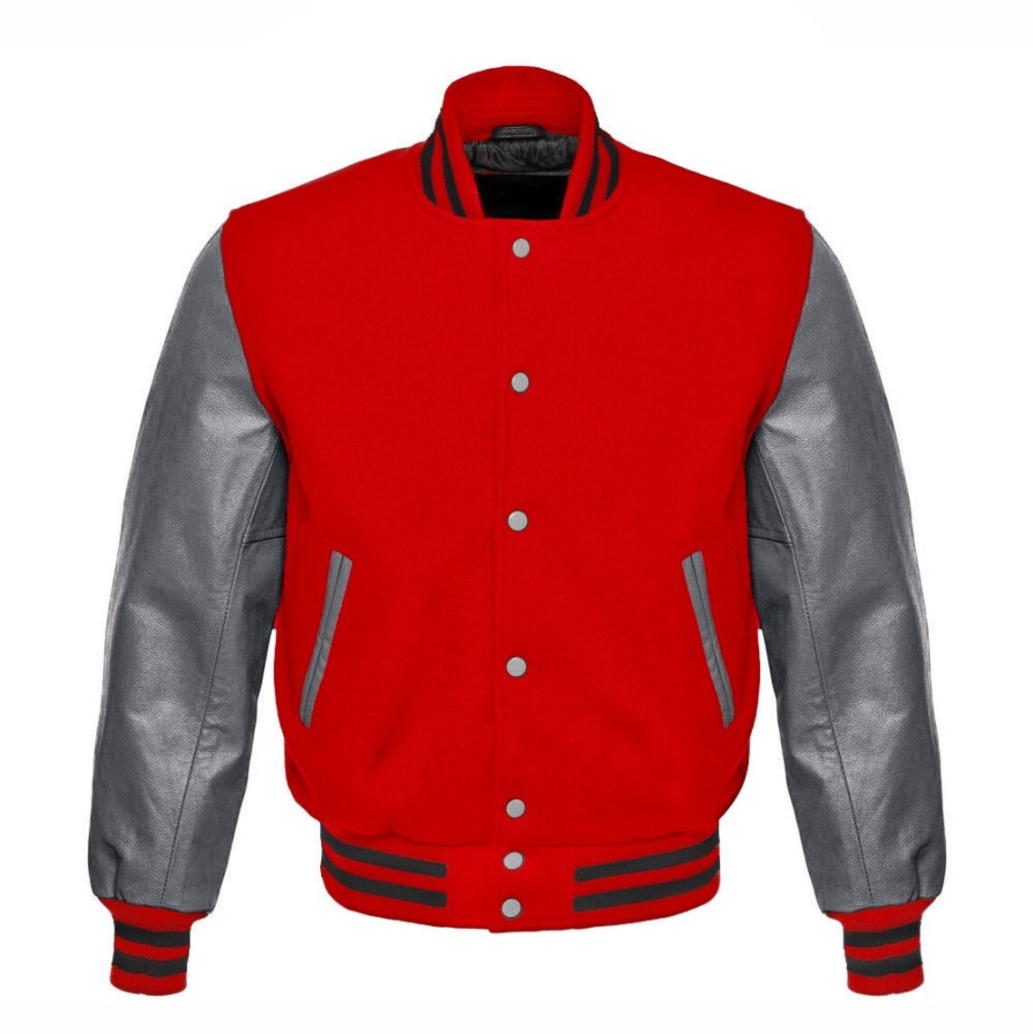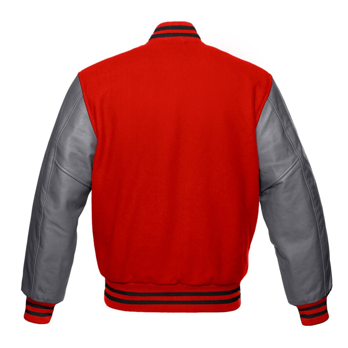 The Red and Gray Varsity Jacket is the perfect mix of classic sportswear and modern fashion. Featuring a bold red body with contrasting gray sleeves, this jacket adds a fresh twist to the timeless varsity look. Whether you’re at school, on campus, or simply going out with friends, this color combination makes you stand out while keeping things stylish and versatile.