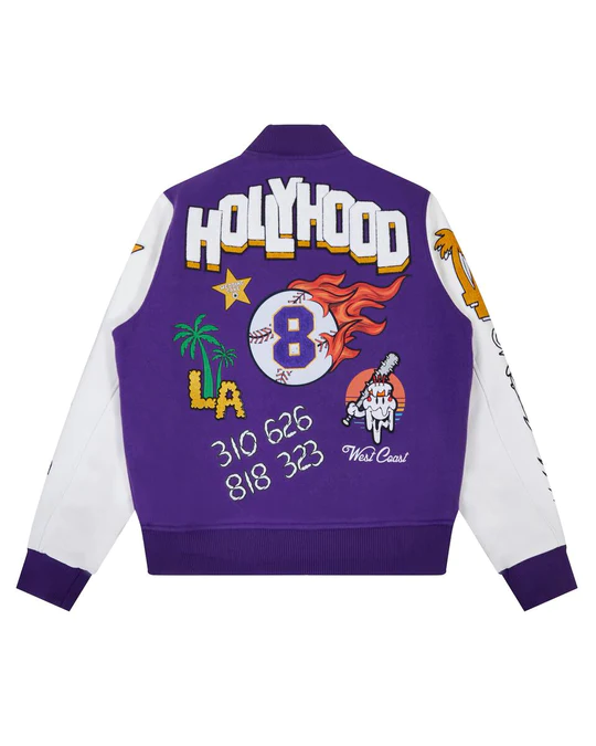 Key Features Of Wedding Purple Cake L.A Varsity Jacket