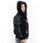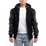 Crafted with a premium wool body and genuine leather sleeves, the Womens Black Wool And Leather Hooded Jacket offers both durability and modern style. The addition of the hood makes it stand out from traditional varsity and letterman jackets, giving it a casual, street-ready edge while still maintaining a polished finish.