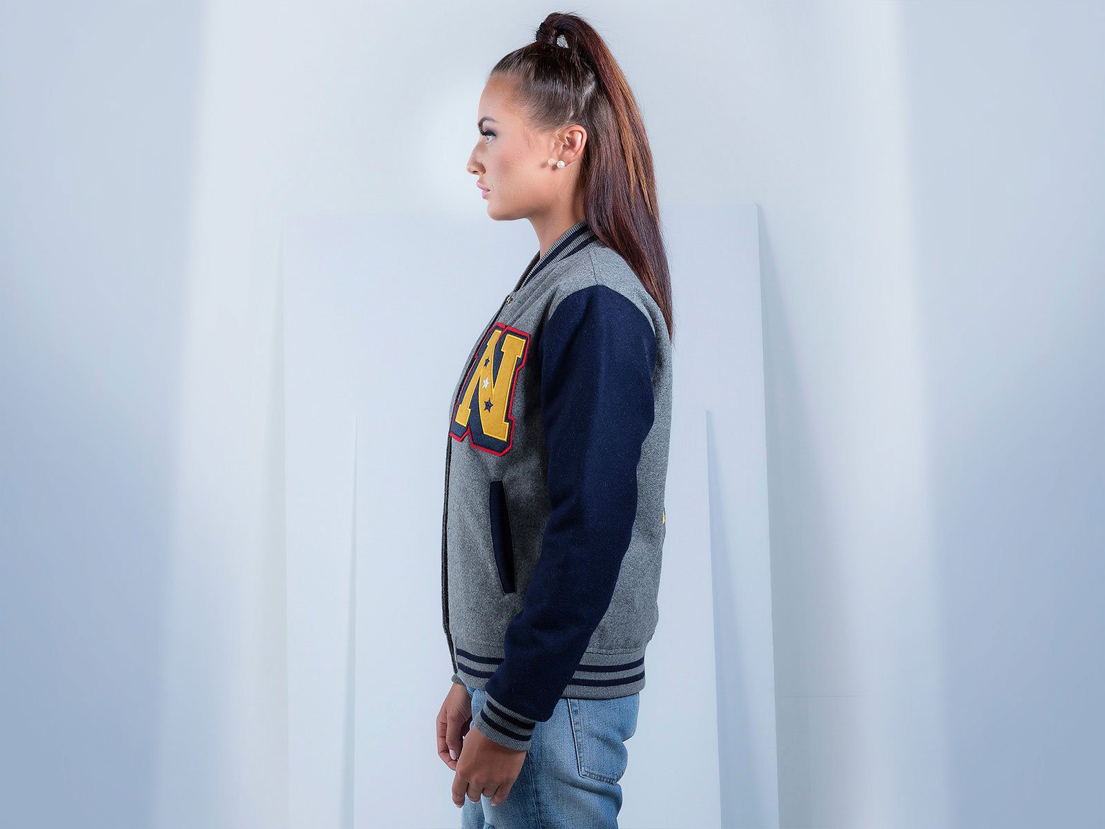 Key Features Of Womens Grey And Blue Letterman Jacket