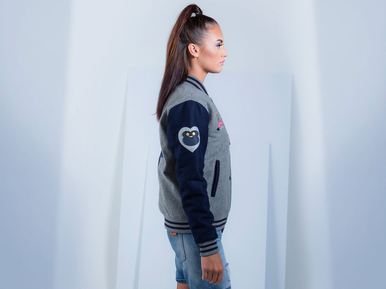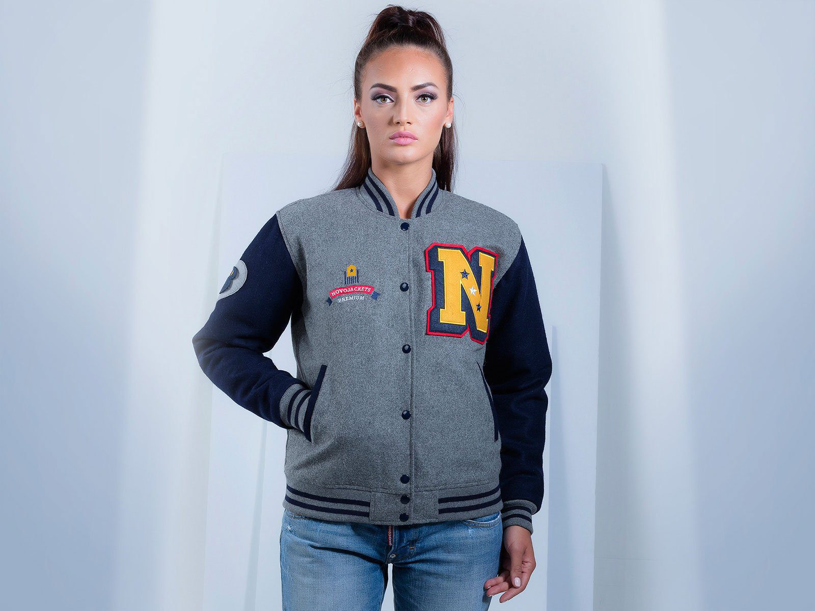 Conclusion For Womens Grey And Blue Letterman Jacket